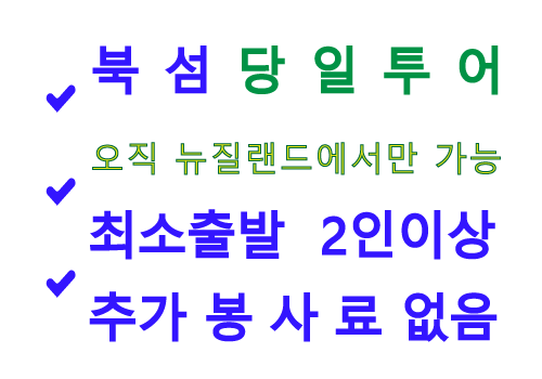 2.당일투어 상품이나 오클랜드 시내에서 미팅하는 고객분들은 사전에 고지되는 미팅장소와 시간을